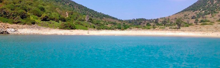 Un îlot discret au cœur des Petalioi, bordé de sable clair et d’eaux cristallines.